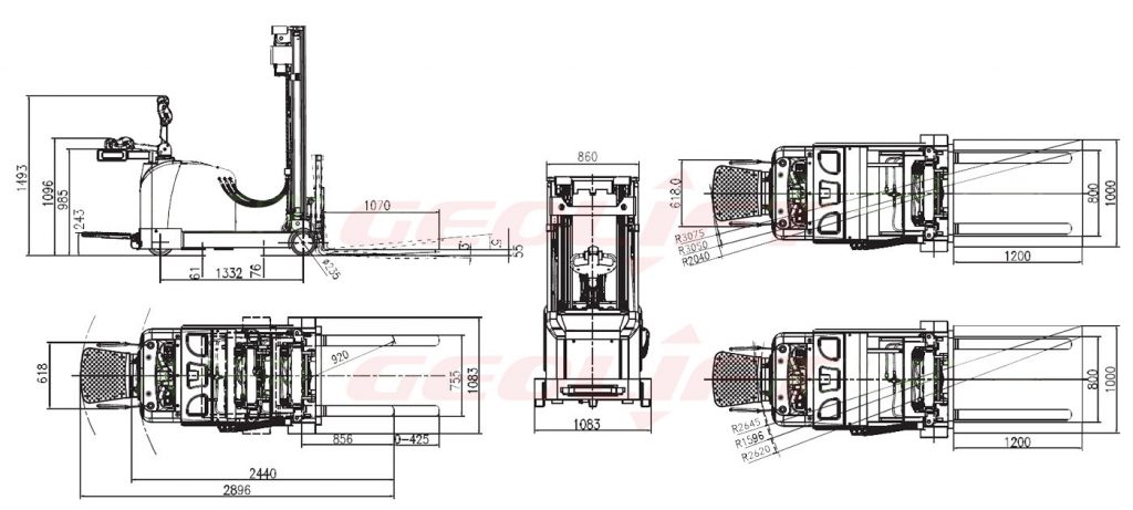 | Aisle Width (L1000×W1200) | mm | 2480 (retracted) / 2905 (extended reach) | |||||